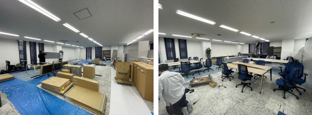 その後、書庫や備品の戻し作業も完了し、動線を確保しながら新しいレイアウトに整えました。