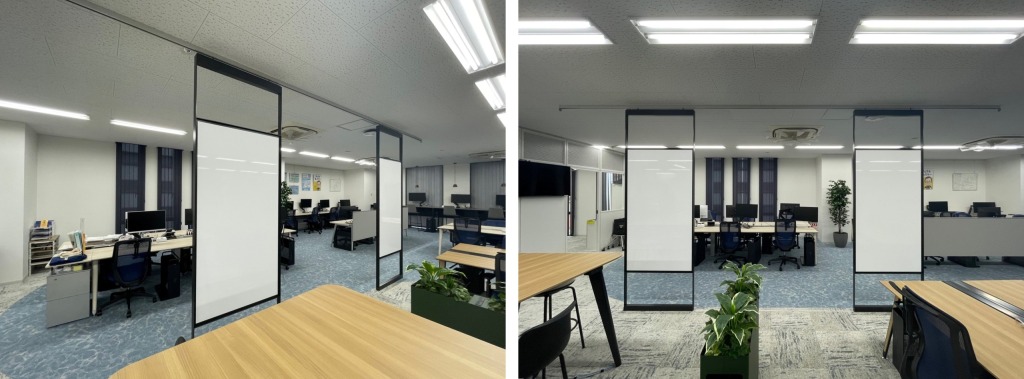 最終仕上げとして、コクヨの「フレイン」シリーズを採用した間仕切り工事を実施。