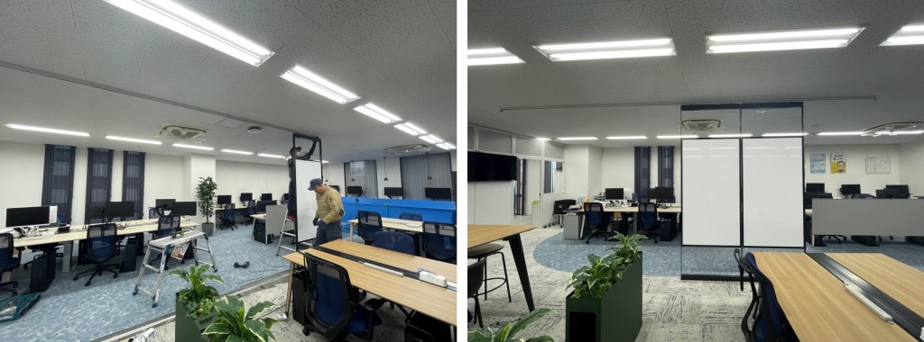 本記事では、「大阪 オフィス内装工事」の中でも特にご相談の多い レイアウト変更対応工事 の実例をお伝えします。