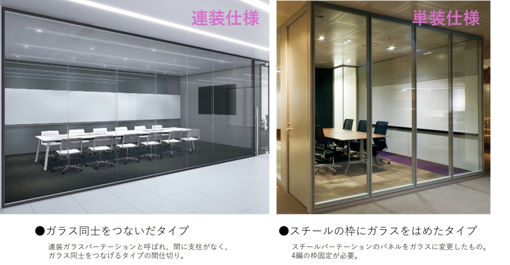 間仕切り設置後のガラスパネル。シート施工前の状態です。