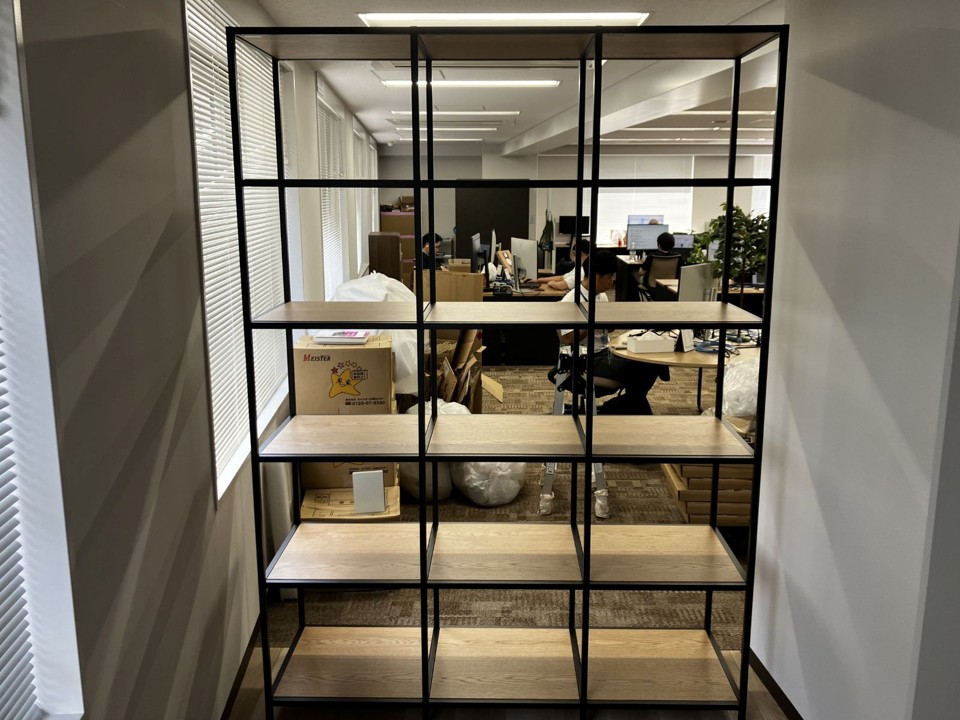 最後に、オフィスに合わせて製作した別製ラックを納品しました。収納力が向上したことで、資料や備品の整理が容易になり、必要なものをすぐに取り出せる効率的な環境が実現しました。
