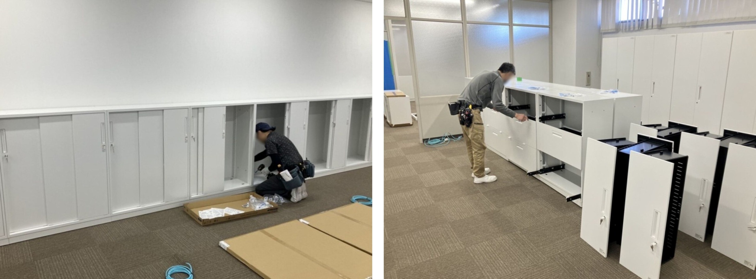 オフィスのレイアウト変更工事に合わせ、新規什器の納品立会を実施しました。