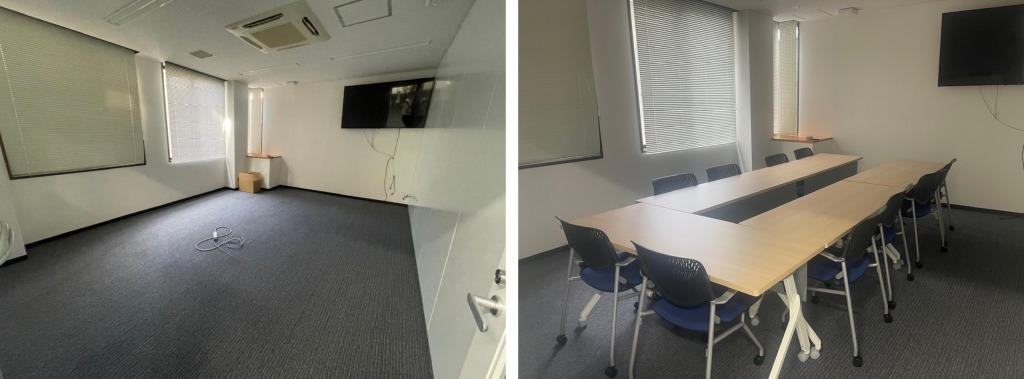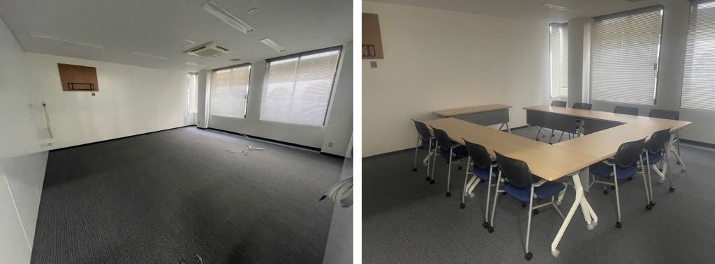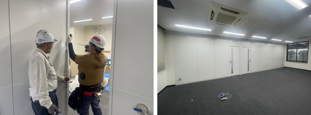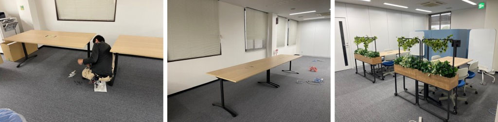 既存什器の廃棄・移設から新規什器の設置、間仕切り工事までを一括で対応しました。