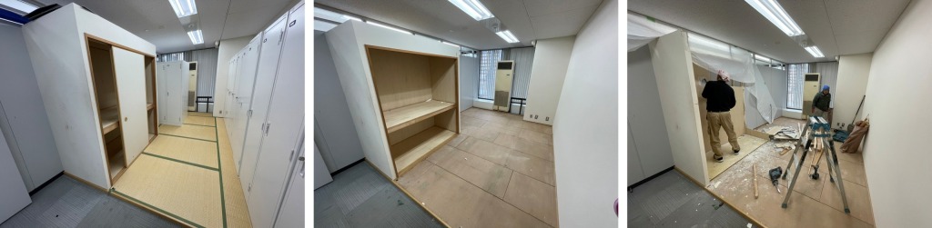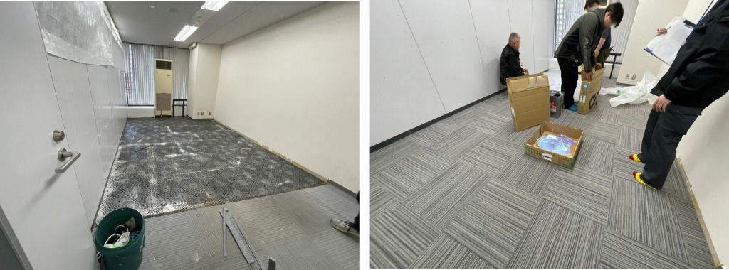 まず更衣室の改修では、畳や押入を撤去し、タイルカーペットを敷設することで、清潔感と快適性のある空間へと生まれ変わらせました。