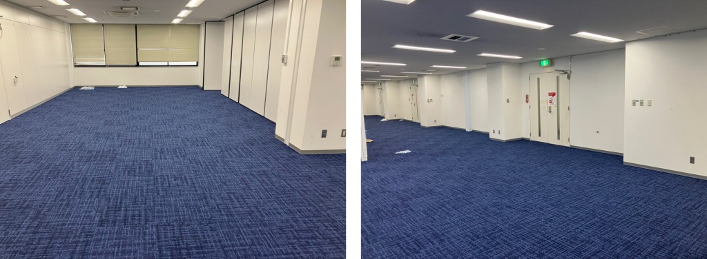 「間仕切り工事」「クロス貼替」「タイルカーペット貼替」など、複数の工種を同時に行い、快適で機能的なオフィス空間を実現しました。