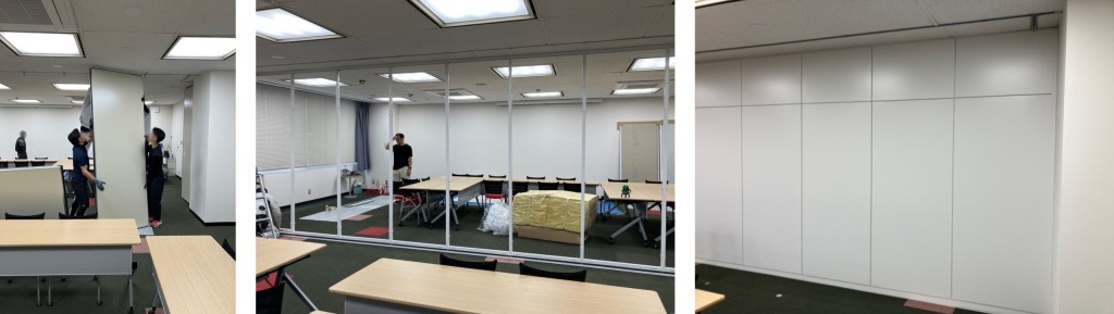 ▶ 既存の間仕切り(スライディングウォール)を撤去し、新たに間仕切りを設置。