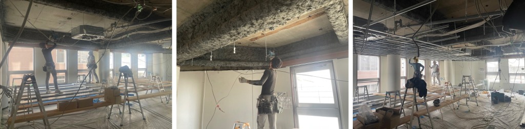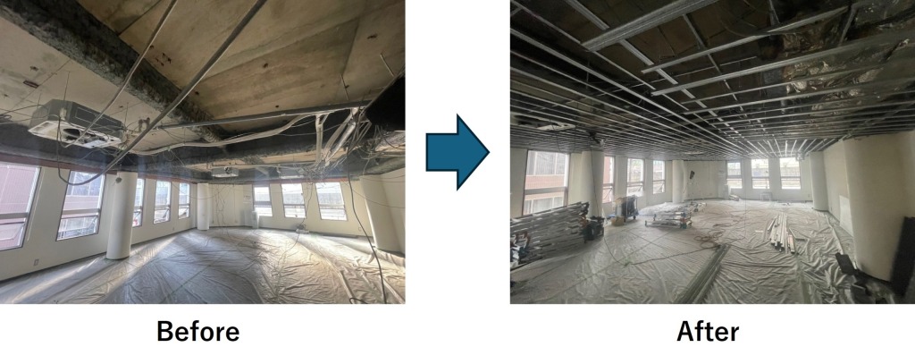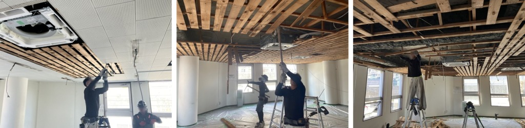 撤去後は、天井内部の状態を確認し、次の下地工事に備えました。