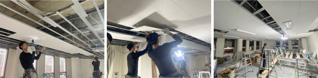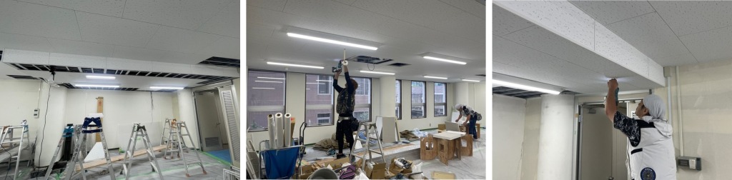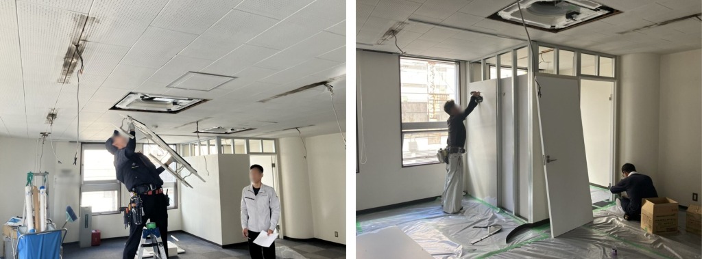今回のような天井や壁のリニューアル工事は、オフィスの快適性や印象を大きく向上させる重要な工事です。