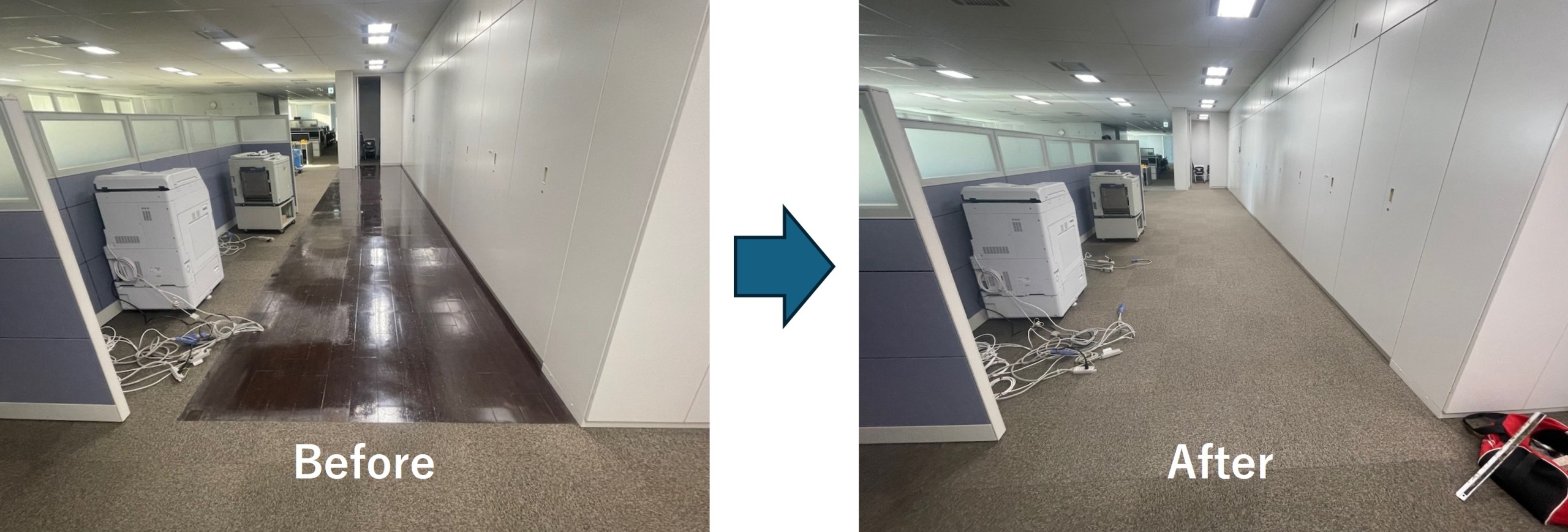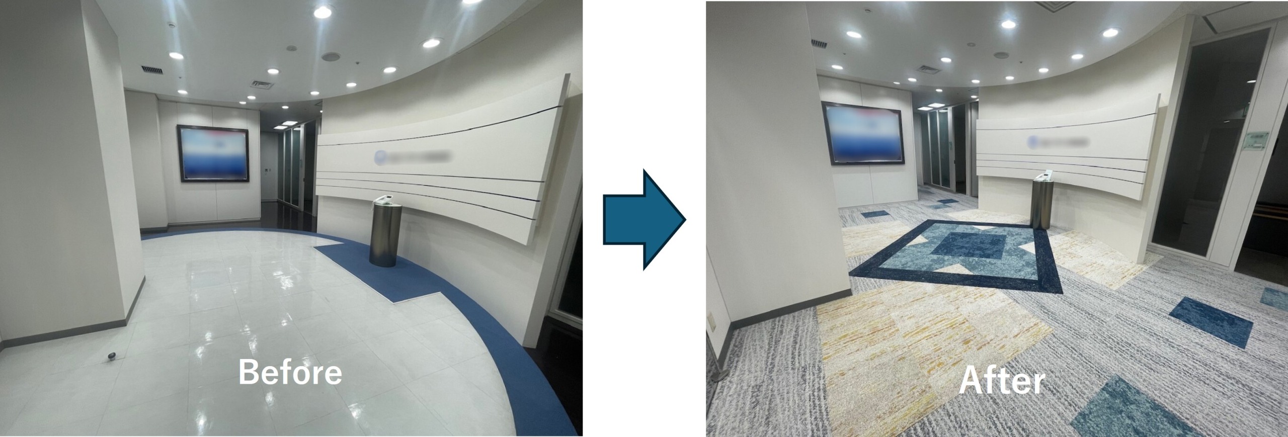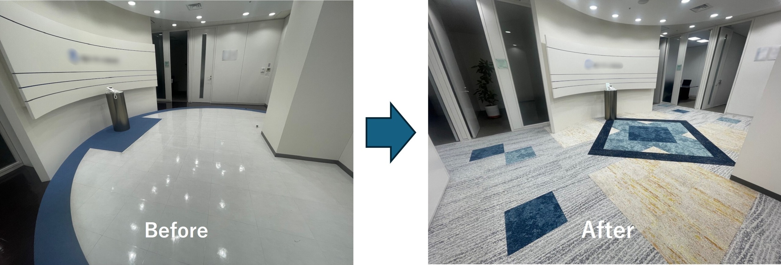 エントランス・執務室ともに、床面が整い、清潔感のある仕上がりとなりました。