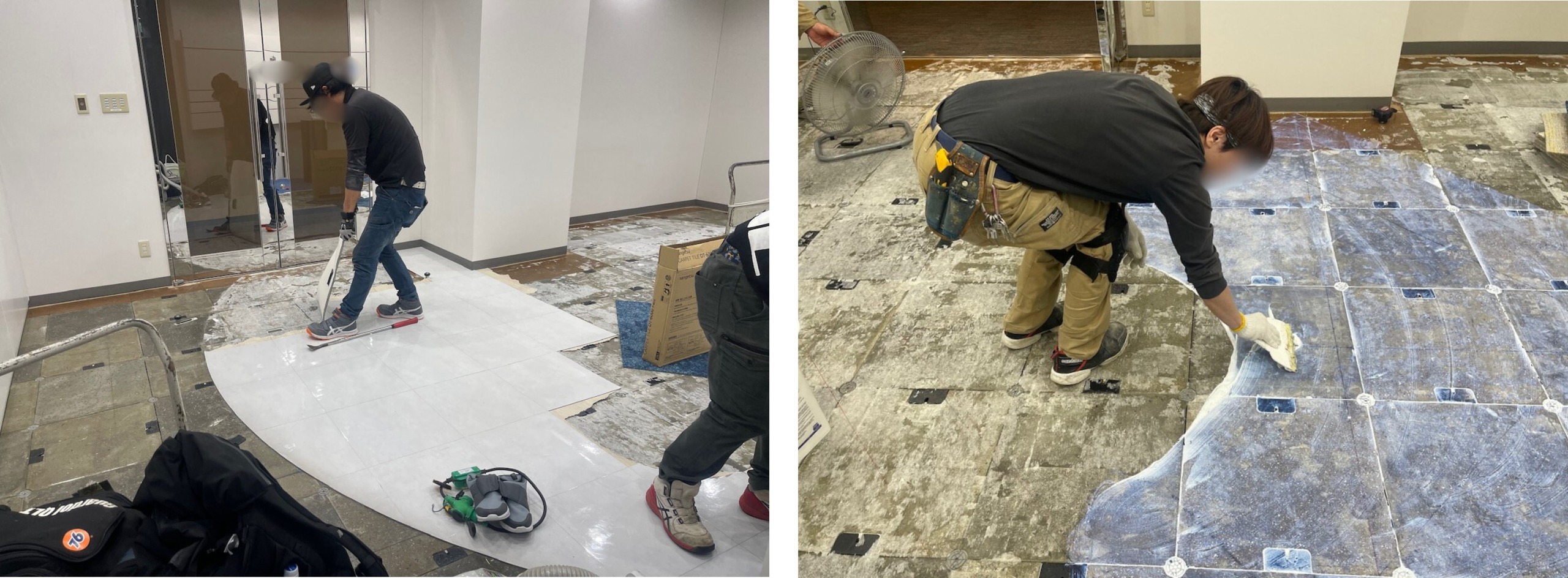 今回は大阪エリアにて、飲食サービス業のお客様のオフィスでタイルカーペットの貼替工事を行いました。