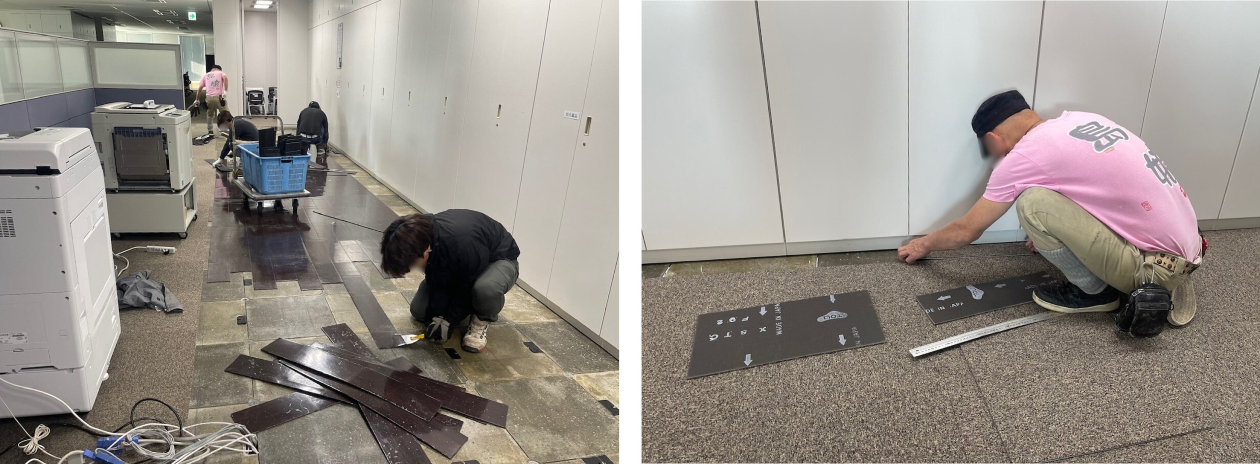 執務室の一部およびエントランスを対象に、床の貼替作業を実施しています。