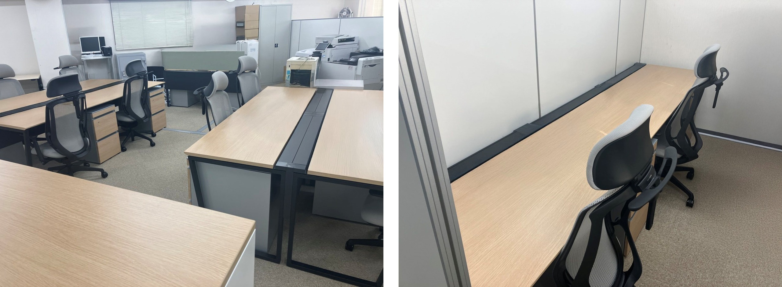 今回の工事では、レイアウトの見直しにより動線が整理され、作業効率の高いオフィス環境へと生まれ変わりました。カーペットを新しく貼り替えたことで、執務室全体が明るく清潔感のある印象になり、働く空間としての快適性も向上しています。また、不要配線の撤去と新規配線の整備によって床まわりがすっきりとし、より機能的で安全性の高い執務環境を実現できました。さらに、複数の工程を短期間に集約したことで、お客様の業務に影響をほとんど与えず工事を完了できた点も大きな成果といえます。