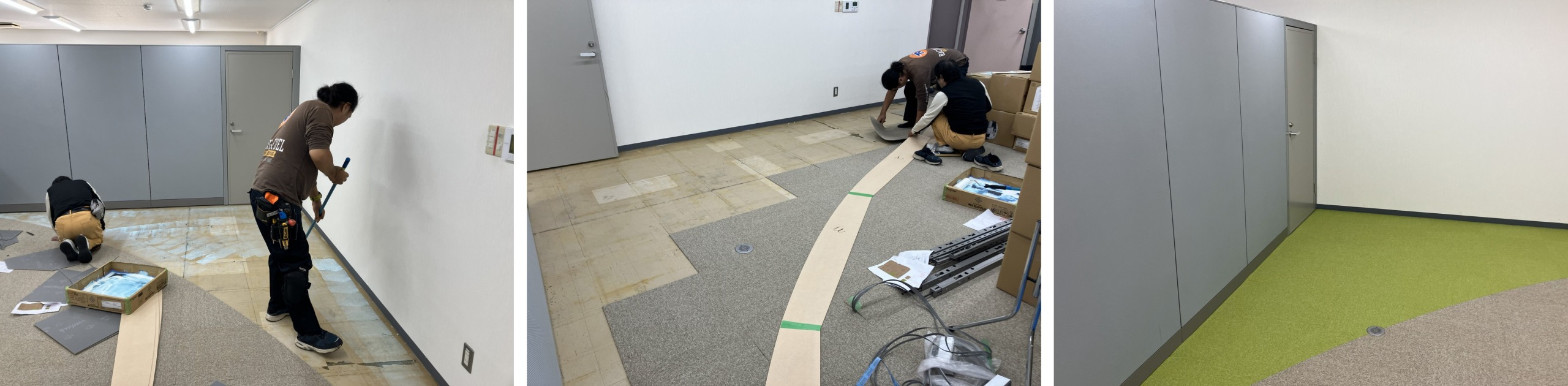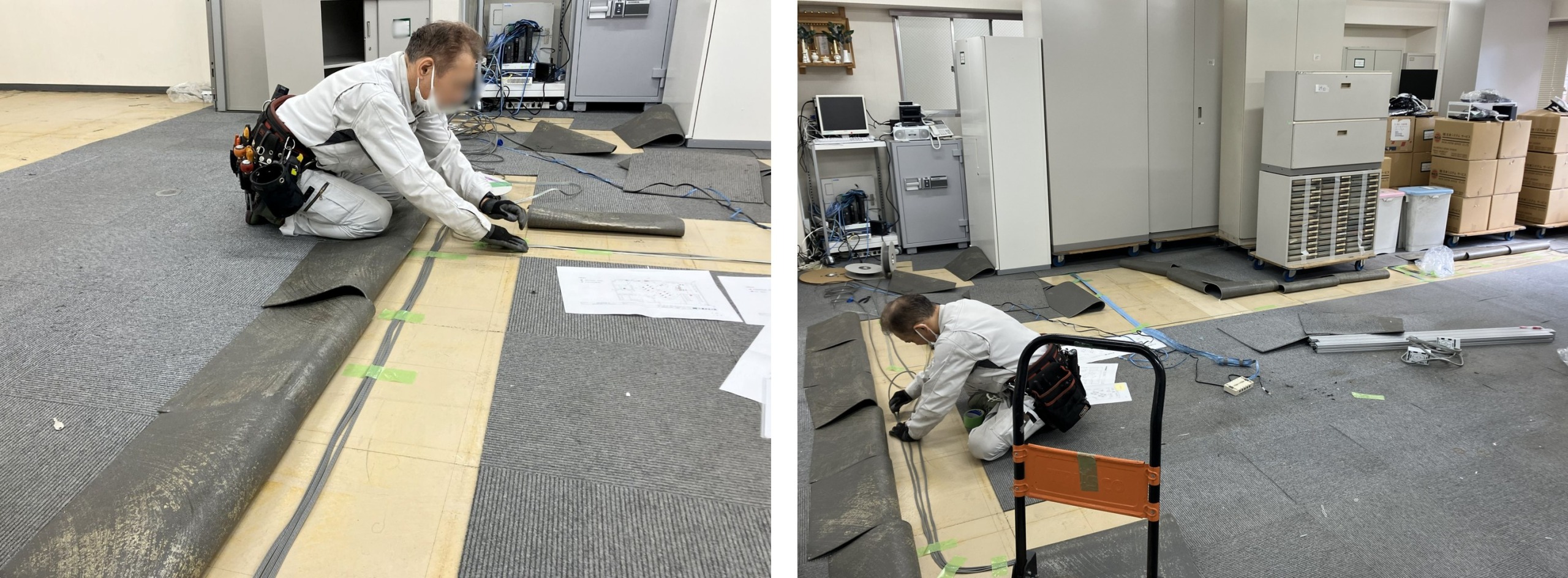 ■ 2日目:カーペット施工・パーティション再組立・電気/LAN配線