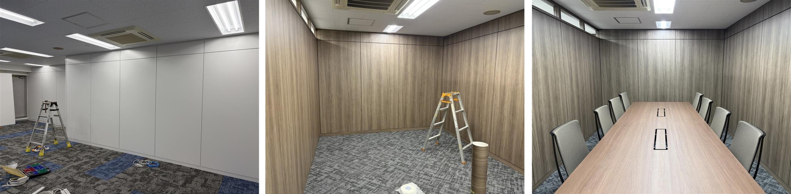 大阪市の某企業様の移転に伴い、内装工事と新規什器の納品を行いました。執務エリアや会議室を省スペースで使いやすく整え、遮音性の向上にも配慮した案件です。オフィス移転や会議室改装を検討する企業様に役立つ事例となっています。