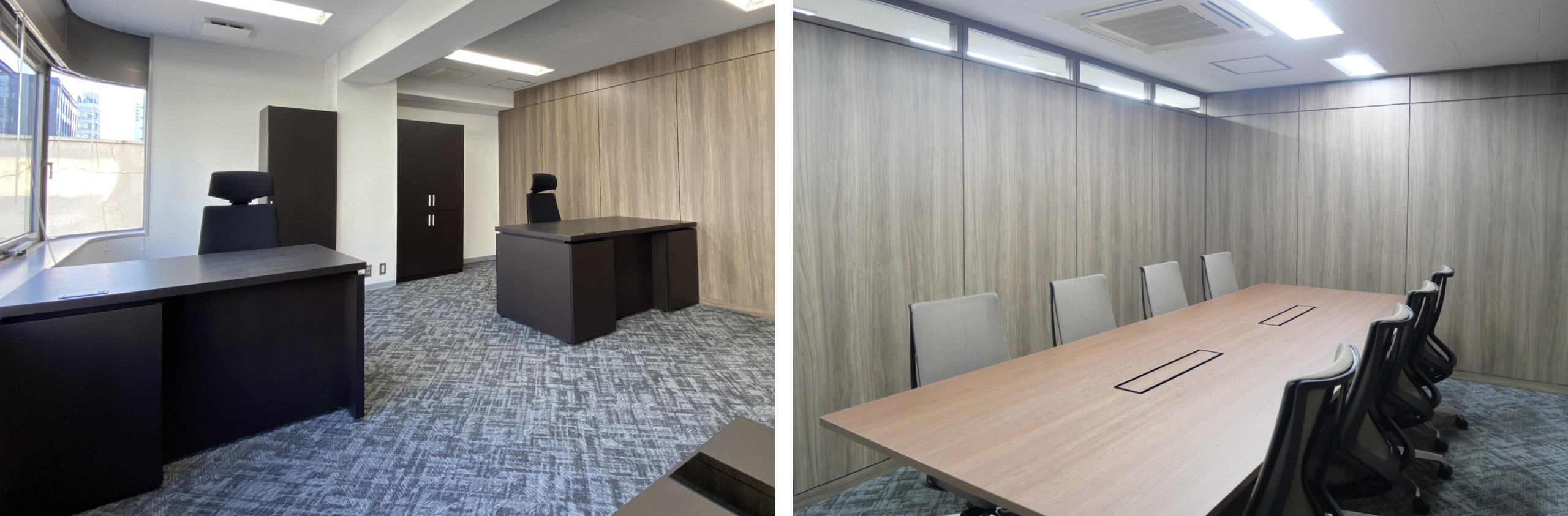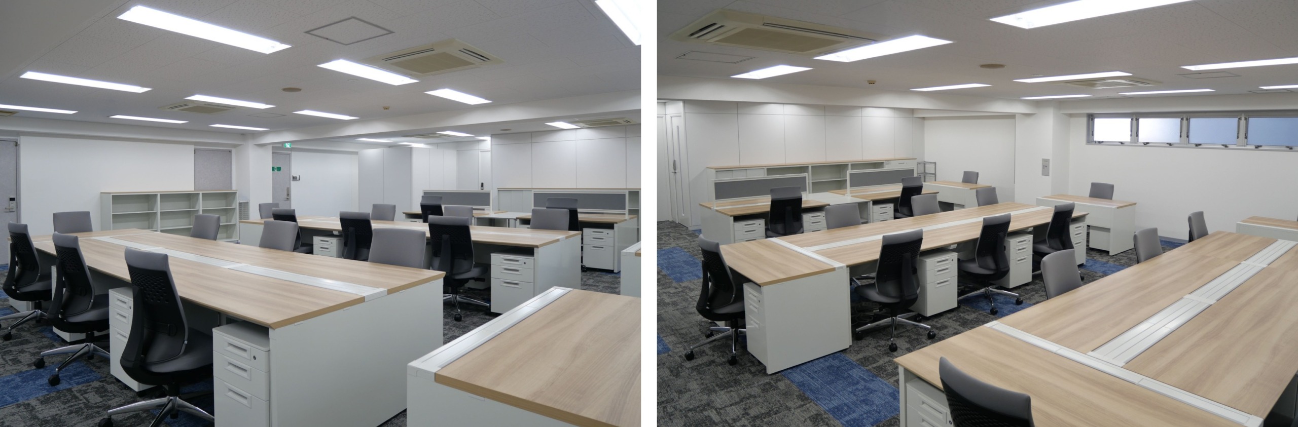 移転先は別階のワンフロアで、社長室、経理室、会議室、執務エリアを広く確保しました。これにより、将来的な増員にも対応できるレイアウトとなりました。